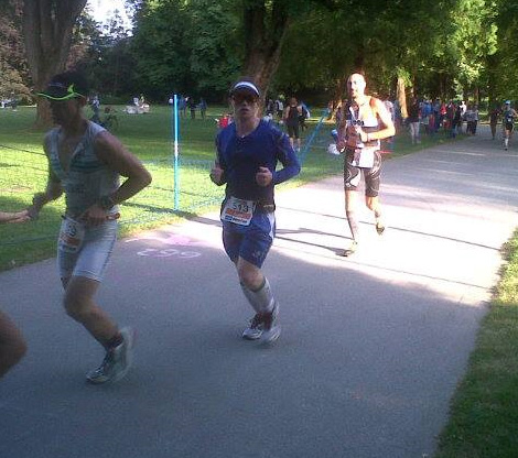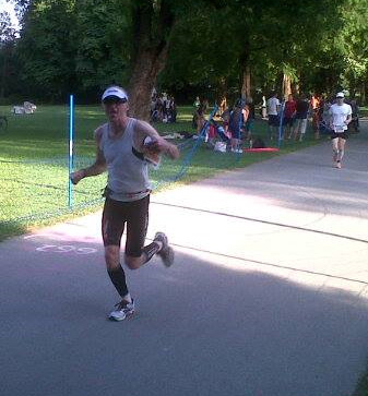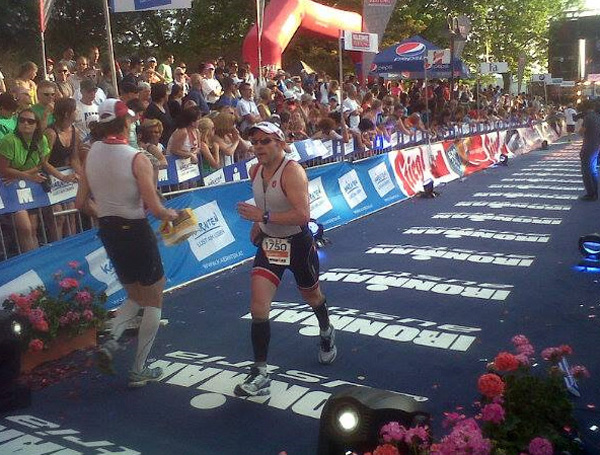 Damn it was hot when I hit the run. Looking back at the weather reports it hit a high of 27 degrees. Not good for a pastey white fella like myself. Thankfully I had decided to wear ‘arm coolers’ on the bike and run legs – these work in such a way that when you sweat or wet them, the air cools your arms – and they definitely worked well! There was a certain stretch of the run course which was about 8miles in length and you had to do it twice – it was like running through hell – it was just so hot and there was very little shade on these parts. Every breath you took was dry and warm. Every 2km or so there were aid stations, so we all used the water sponges to soak ourselves and shove into our tri suits just to try to keep the body temperature down – these were a God send for sure! The other 2 loops that you did took you into the town centre and back – thankfully there was plenty of shade on these stretches!