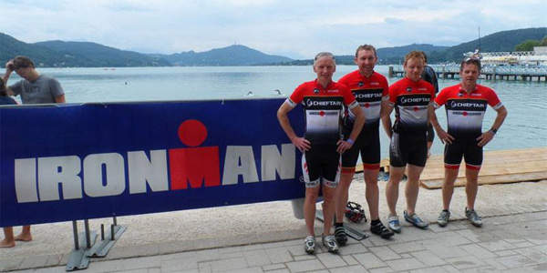 Four Island Wheelers travelled to Austria in June 2013 to compete in Ironman Austria, one of the world’s toughest one day endurance races. The race itself involves a lake swim of 2.4miles (equivalent of 152 lengths of the pool), 112 miles on the bike (of which there was over 6200 feet of climbing on the Austria course), finished off by a full marathon run of 26.2miles. You have 17hrs to complete the race.