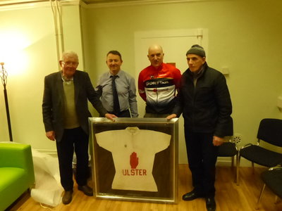 Just last year we discovered that Seamus still had in his possession the jersey he wore as part of the Ulster team in that Ras 62 years ago. IWCC took the liberty of having this “piece of history” framed for Seamus. As well as the jersey Seamus was presented with a picture of the Ulster Team he cycled with in 1962 and a book called “The Rás” which we are all sure Seamus will get great pleasure reading.